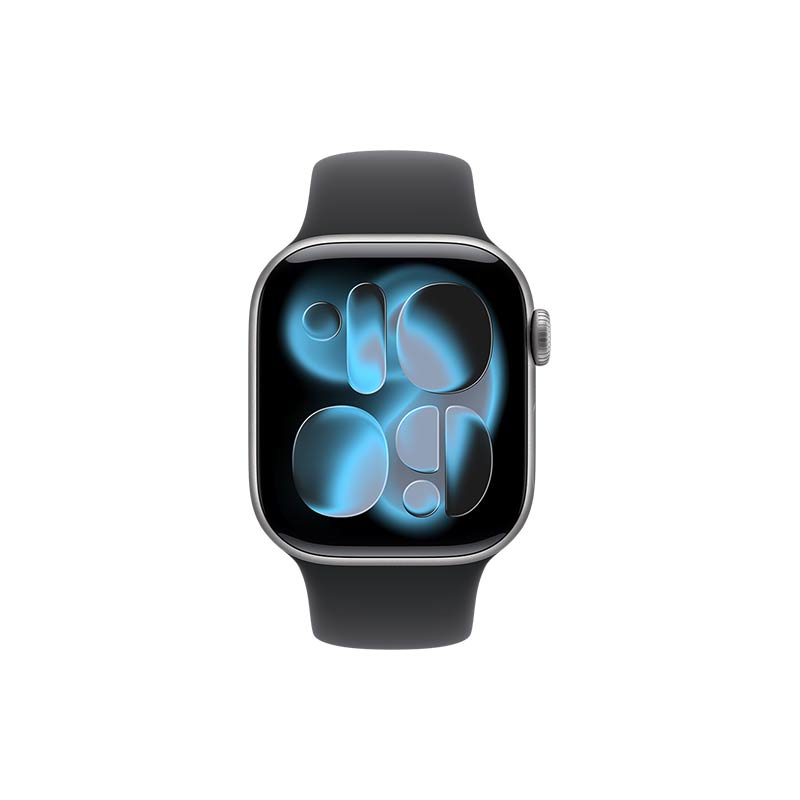 Apple Watch Series 11 GPS, 42 mm Aluminiumgehäuse Diamantschwarz mit Sportarmband Schwarz