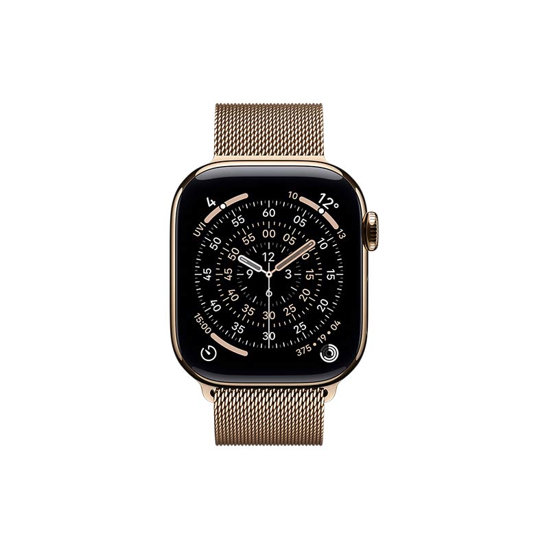 Apple Watch Series 11 GPS + Cellular, 42 mm Titangehäuse Gold mit Milanaise Armband Gold
