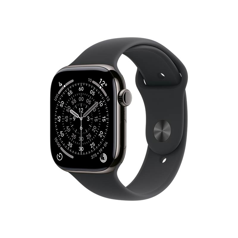 Apple Watch Series 11 GPS + Cellular, 46 mm Titangehäuse Schiefer mit Sportarmband Schwarz
